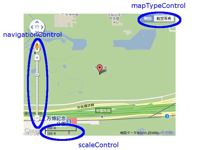 google.maps.NavigationControlStyle.SMALL は、ミニズーム コントロールを表示します。これは + と - ボタンだけがあるものです。このスタイルは携帯端末に適しています。